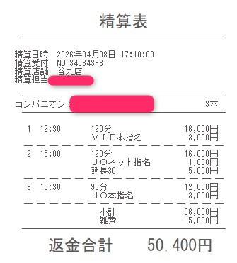 本指名バックは3,000円