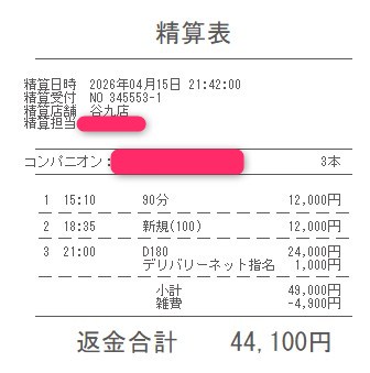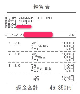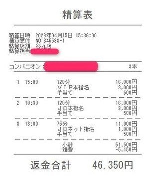 本指名バックは3,000円
