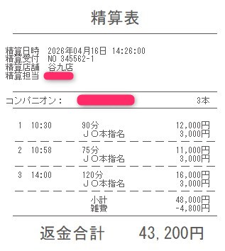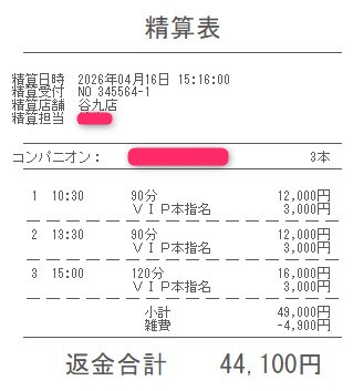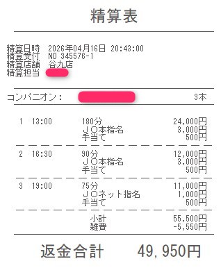 本指名バックは3,000円