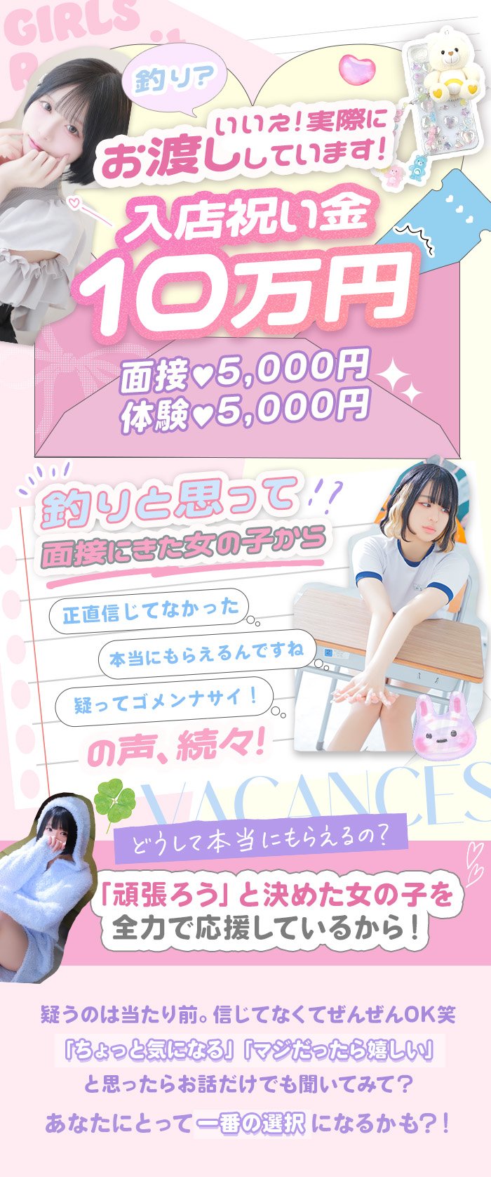 さらに、体験入店を選んだ場合には別途5,000円の体験謝礼もあります◎