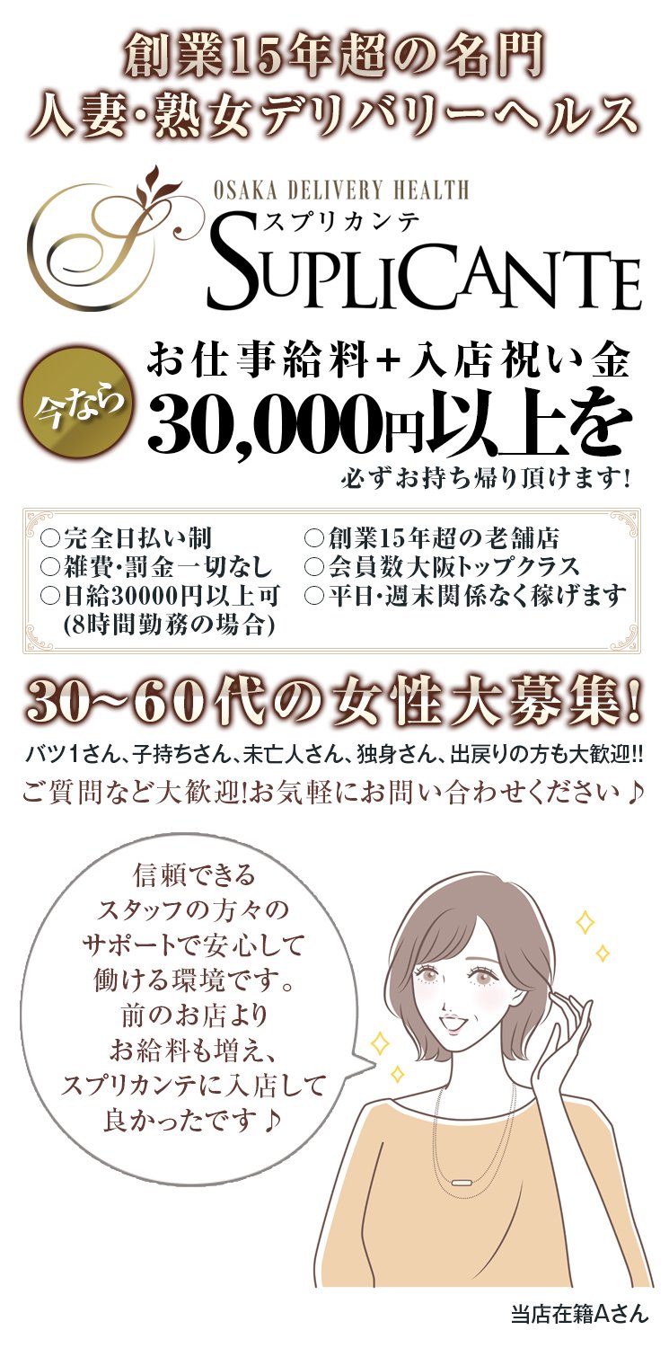 関西を代表する熟女・人妻デリバリーヘルス名門。長年の信頼と実績で安心して働けるお店です。