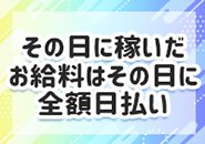 30分ほどのお仕事説明の後、即日やご希望の希望日時で体験入店が可能です♪ お写真の顔出し強制は一切なく、目元のみ・口元のみ・全隠し等ご希望でお選びいただけます♪ 体験入店や入店後のお給料は、全額でその日の日払いでお渡しいたします♪ |