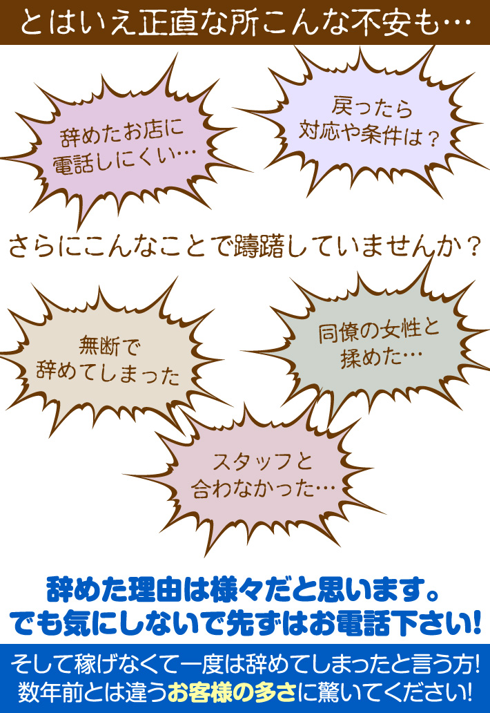 稼げていますか?店長・スタッフと上手く付き合えていますか?集団の待機場は?