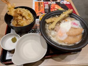もつ鍋うどんは具だくさんでグツグツの熱々。