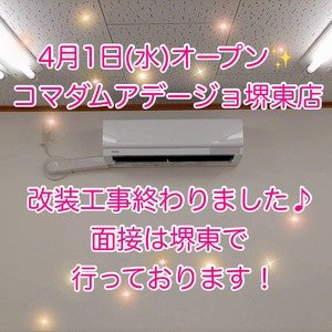 堺東店の事務所の改装工事が予定より早く終了致しましたので、現在、面接は堺東店の事務所で行っております!