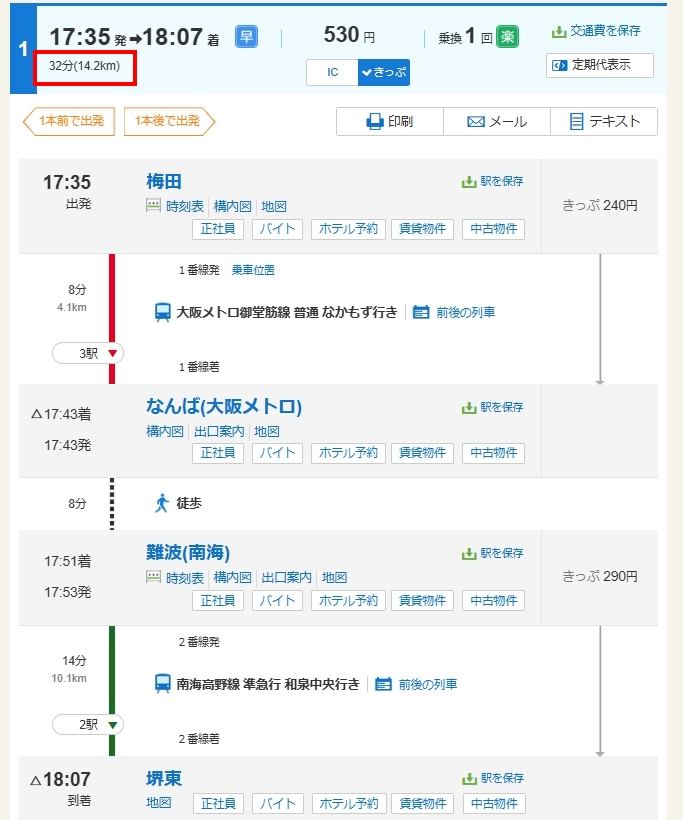 ⇒ 御堂筋線+南海高野線で【約35分】!