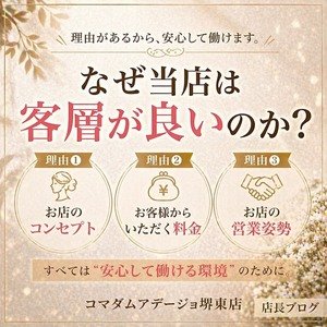 ご予約の段階からお客様との信頼関係を築けるよう意識し、女性が安心して接客に入れる環境づくりを心がけております。