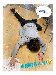 ※写真は忙しさから、ぶっ倒れながら掃除している僕の姿です。