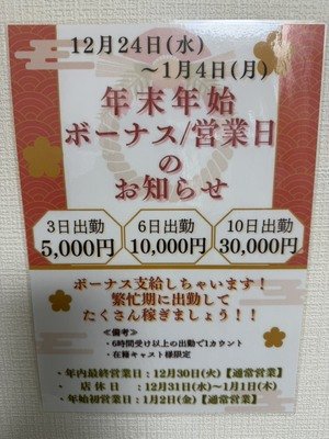 こんばんは!スタッフの菅原です!本日は【年末年始の営業】についてのお知らせです(__)
