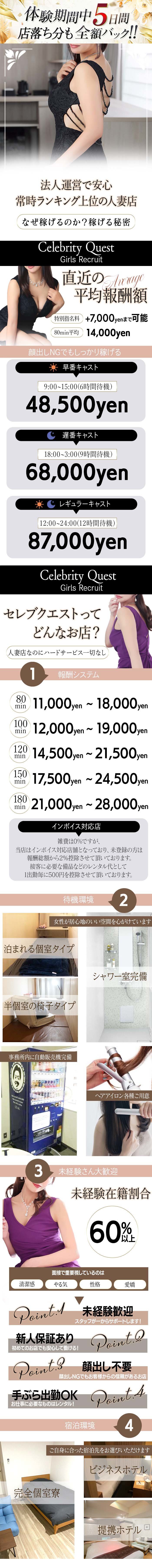 セレブクエスト越谷店は、常に越谷エリアのデリヘルを最前線でトップを走る有名デリバリーヘルス店です。