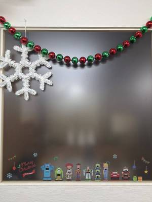 喫煙所のすりガラスにデズニーのシール貼ってみた