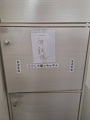 こだまんは1年事務所ではご飯食べないって決めたらしくロッカーに張り出したみたい