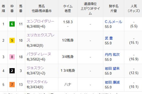 4着の『ジョスラン』からの馬連・馬単流し泣