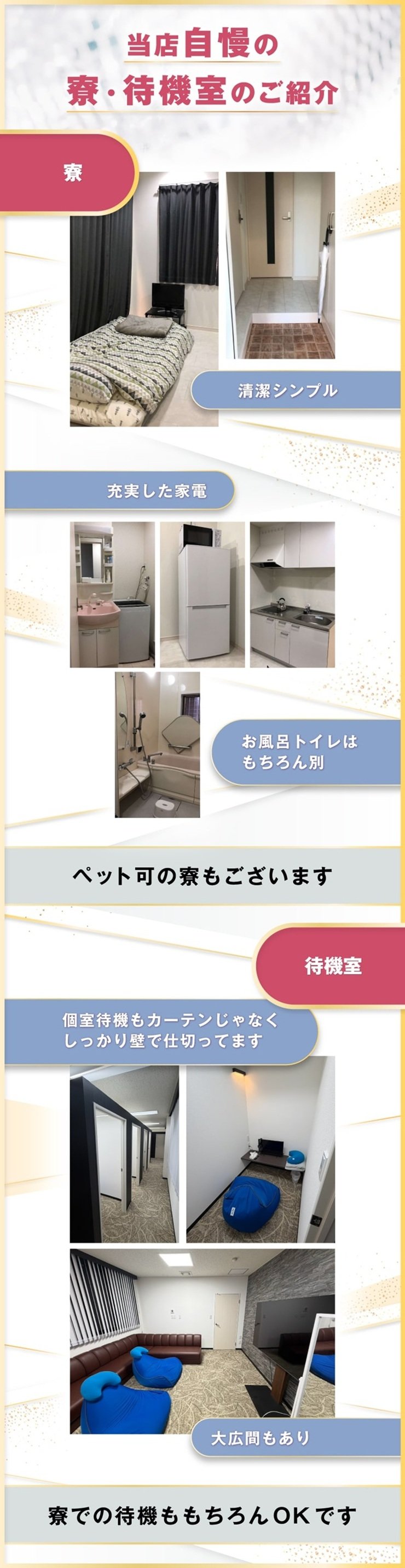 | A | 基本寮待機、待機所の待機をお勧めしておりますが 自宅待機も可能です、ご相談ください☆ |