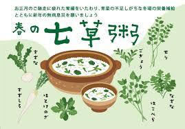 1月7日は「七草がゆ」を食べて、お正月のごちそうで疲れた胃を休める、1年の無病息災を願う。