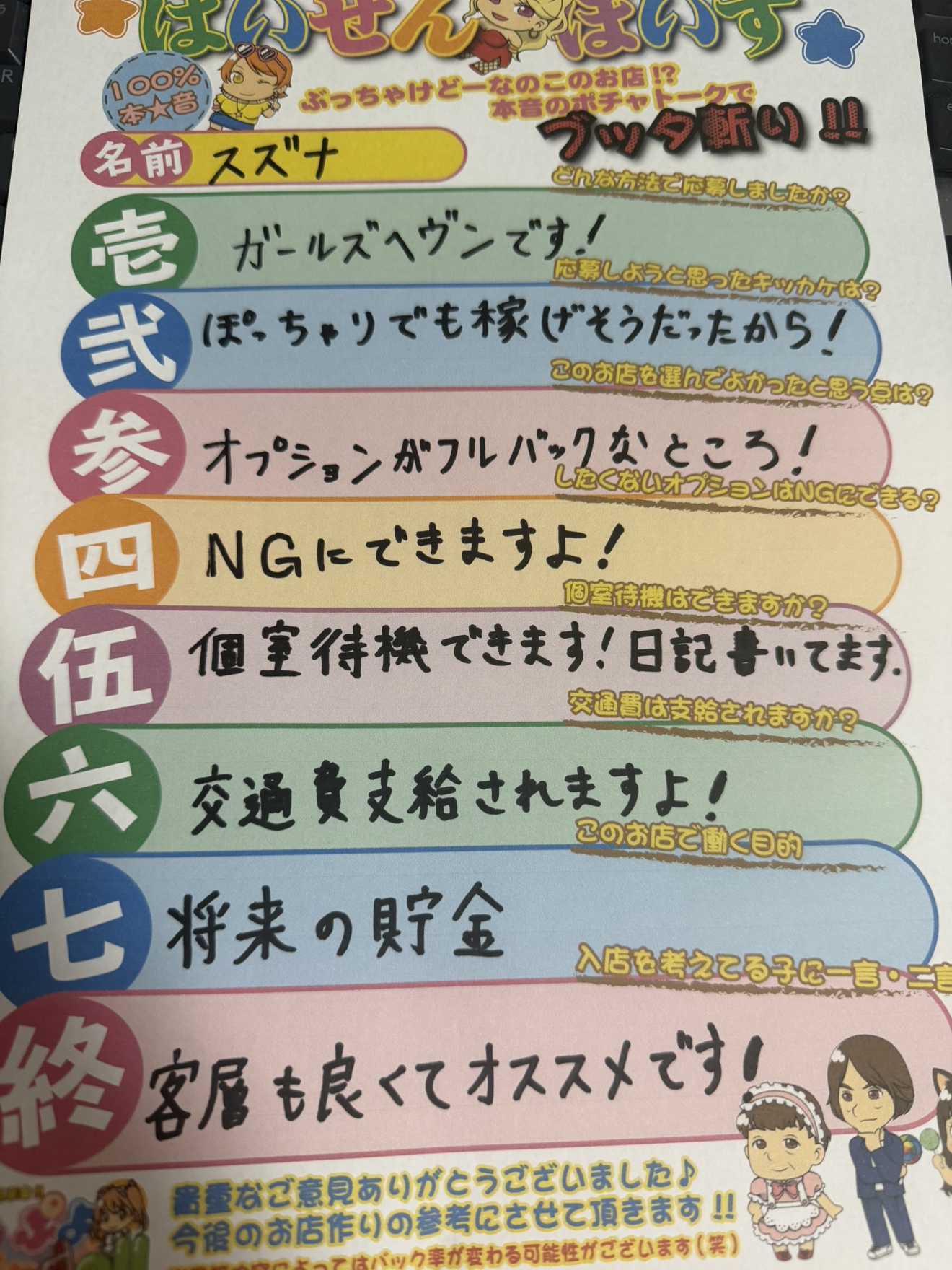 ●入店を考えている子に一言二言!→客層も良くておすすめです!