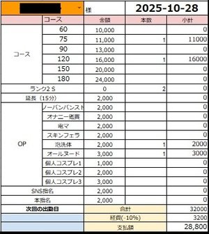 2名接客で28800円です
