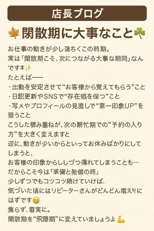 実は「閑散期こそ、次につながる大事な期間」なんです✨