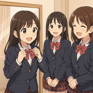 鏡の前では、「リボン曲がってないかな?」「前髪大丈夫?」なんて