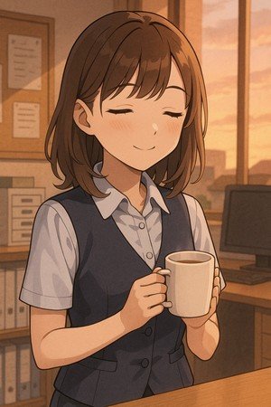 お気に入りのマグカップで温かい飲み物を飲んでいる姿。