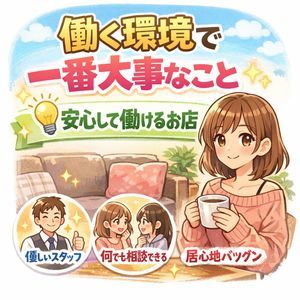 お店選びでよく「どれくらい稼げるか」を気にする子は多いと思いますが、実はそれと同じくらい大事なのが働く環境です✨