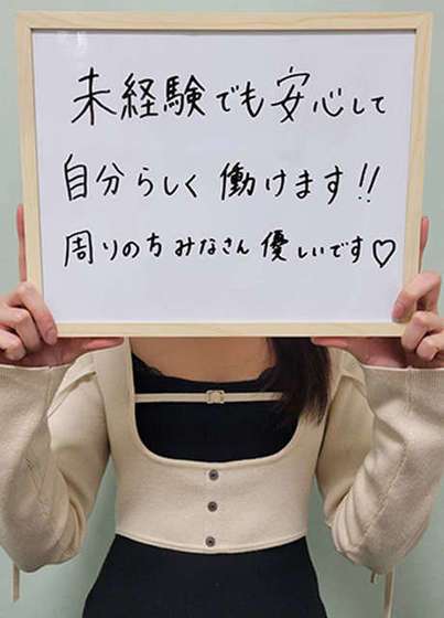 私の場合は、風俗未経験で男性経験も少なく、体の負担が少ないソフトサービスの内容のお店を探していました。そんな中、求人サイトで『浜松回春性感マッサージ倶楽部』を見つけて、最初は求人サイトに書いてあることが本当なのか不安に思いながら面接に行きました!実際に働いてみてみた感じ求人サイトの内容のままだし、このお店は信用できるのかなと思いました(^^)本当に皆さん親切な方ばかりなので、お客様も優しい方ばかりでお仕事頑張れてます♡