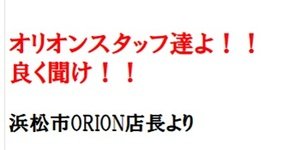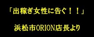 オリオン店長から「長い待機中にこれを見てくれているあなた!」■浜松エリアで移籍をお考えの女性へ