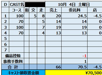 10/4(土)本日体験さんの全額バック手取り70500円の詳細。オリオン店長より
