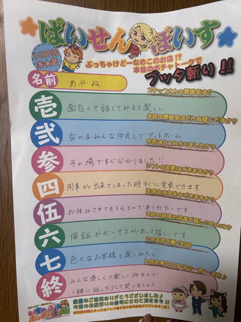 ⑦このお店で働く目的は?→色々なお客様と楽しみたい💕