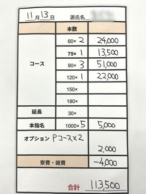 | 本指名90分 | 3本 | 17,000円 | 51,000円 |
