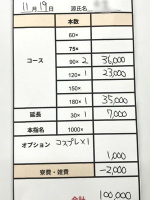 | 写真指名180分 | 1本 | 35,000円 | 35,000円 |