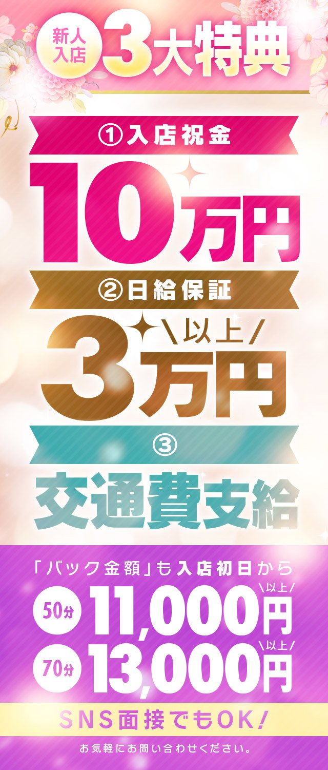 ラストまで勤務できる女の子はダブル特典!『入店祝金を倍の20万円にして支給致します』