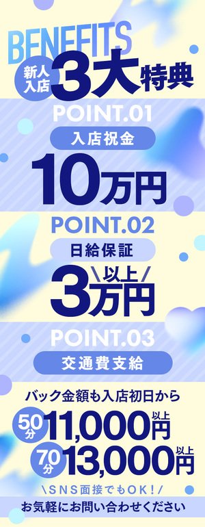【ラストまで勤務できる女の子必見!入店祝金10万円を20万円に増額してプレゼントします】
