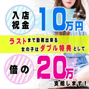 【ラストまで勤務できる女の子必見!入店祝金10万円を20万円に増額してプレゼントします】