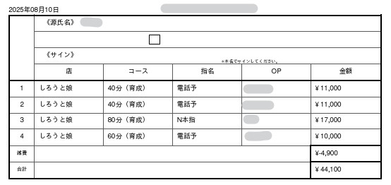 4時間出勤の女の子の給与になります!