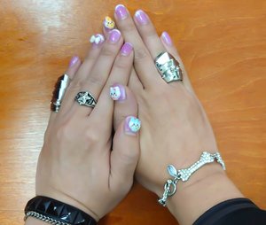 右人差し指はうさぎ、左薬指にはリボン🎀