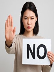無理に笑顔を作らず、毅然とした態度をとる