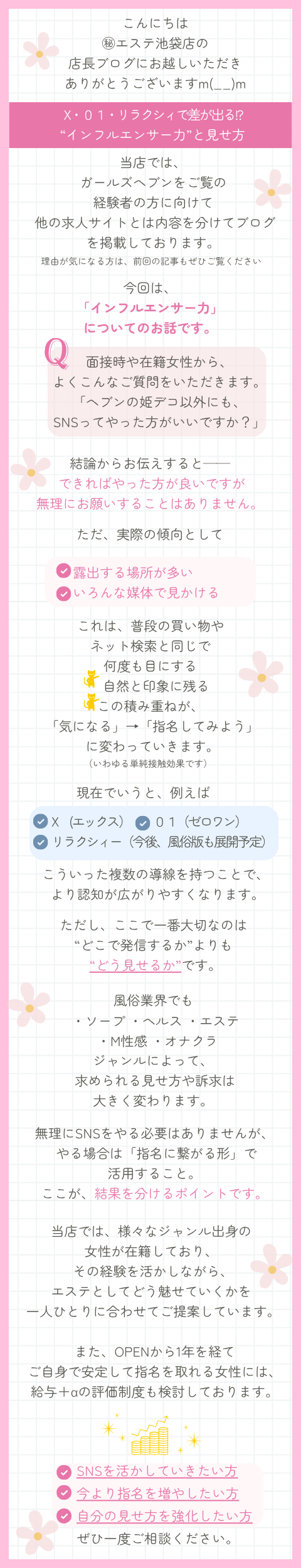 🌷池袋エステ🌷01・X・リラクシィで 差が出る!? “インフルエンサー力”と見せ方