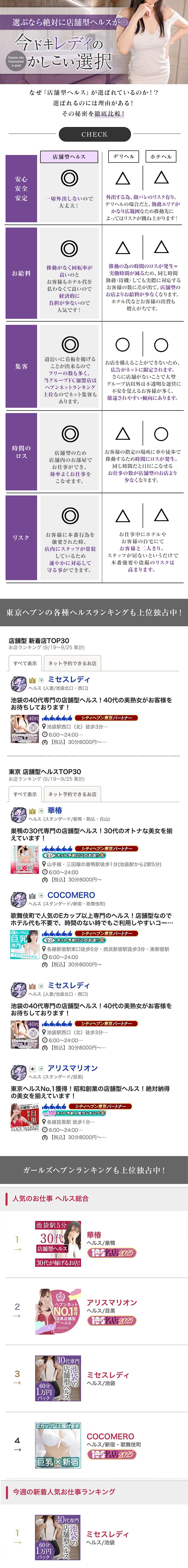 池袋の40代専門の店舗型ヘルスのミセスレディは、完全店舗型なので移動もなく接客効率も良いので稼ぎやすいです!6時間で5人接客も可能です!60分バックは10,000円~16,000円です!同業種の店舗型ヘルスでなければデリヘル、ホテヘル等との掛け持ちも大歓迎!朝6時~24時までオールタイムで稼げます!