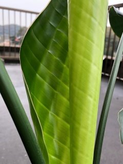 生まれたてのアンスリウムの葉脈にみられる見事な規則性。鮮やかな新葉の色のグラデーションにほとばしる生命の息吹。