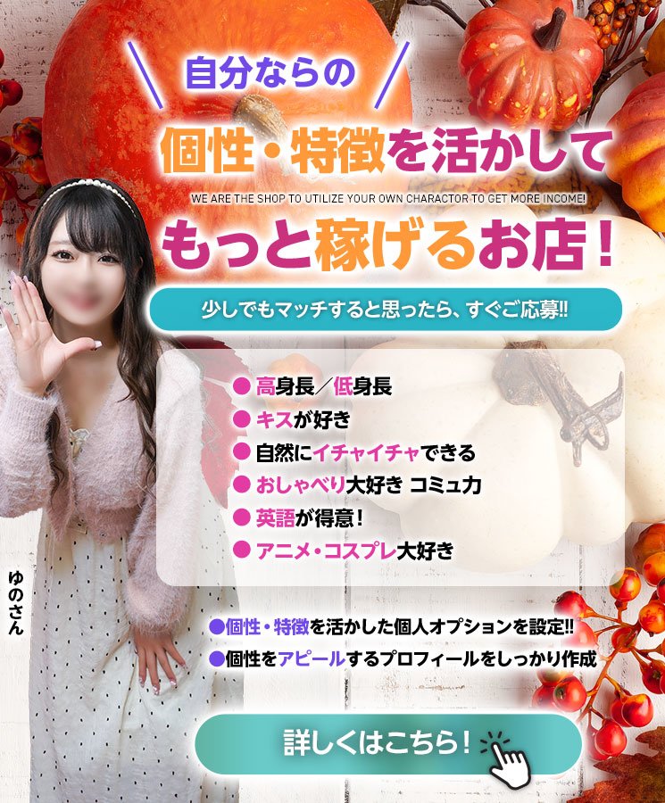 | A | ホテルまたはお客様のご自宅にて口や手などによるヘルスサービスを行います。 出来ないことは店舗と相談の上、無理にしなくてももちろん大丈夫です。 出来ることを頑張りましょう! 当店のお客様は笑顔と癒しを求めるお客様が大半です! 気配りや笑顔を大事にできる女性を求めております。 過激なプレイは必須ではありませんのでご安心下さい! 優しく接してお客様の心を癒して下さい! また、法律という観点でも地域の警察署の生活安全課からサポートを受け、法律を順守してサービスを行う優良店として運営しています。 違法なサービスは一切ありませんのでご安心ください。 |
