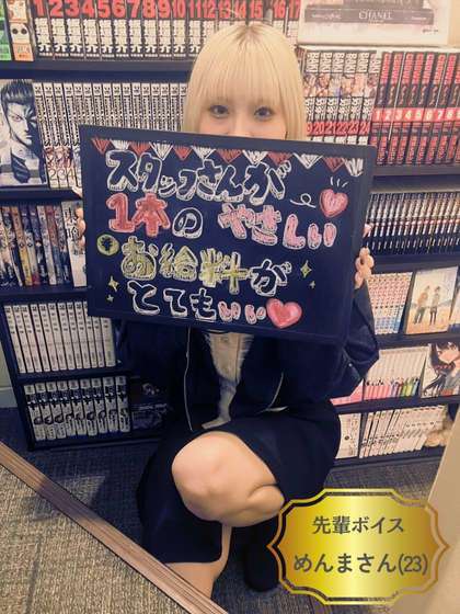 スタッフさんがみんな優しくて、どんな話も聞いてくれます♪出勤日は毎回楽しい気持ちで帰れるのがとっても良いです!そしてそして何と言ってもお給料がとても高いです!一本辺りの単価が高いので思ったより稼げてる!!の驚きが毎回あります笑