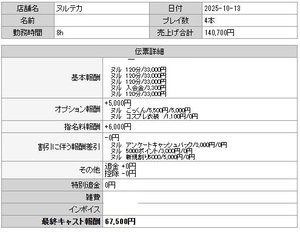 --ある日のお給料(8h出勤)--