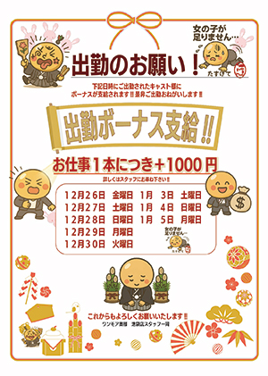 『出勤ボーナス贈呈中』