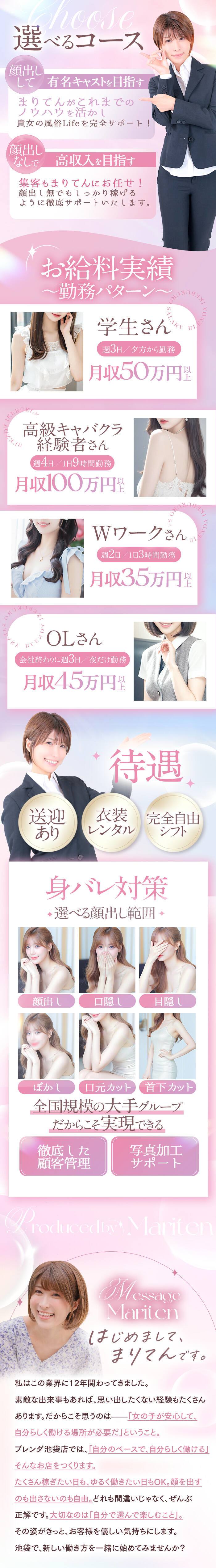 ●18歳〜30代まで大歓迎✨採用率80%以上!経験・未経験問わず募集中🔰💕大学生・一般事務・秘書・受付・コールセンター・データ入力・企業受付・アパレル販売員👗・美容部員💄・カフェや飲食店スタッフ☕・コンビニやスーパーなど、昼職との掛け持ちもOK!主婦・シングルマザー・移籍希望の方も安心して働けます☺️キャバクラ・ラウンジ・メンズエステ経験者も大歓迎✨全国トップクラス【ブレンダ池袋店 × ブランドマネージャーまりてん】のもとで、きっと新しい自分と出会えるはず💎お話を聞くだけでも大歓迎です🌸