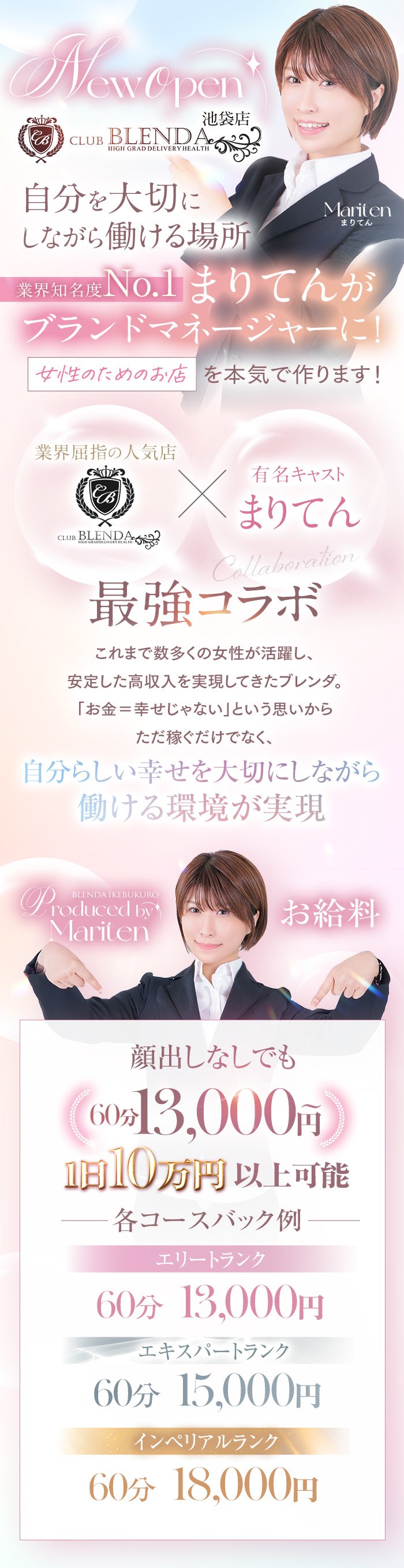 【60分13,000円~】!!●ブレンダ × まりてん●池袋店 ついに始動!!〝まりてん〟完全プロデュースのお店!あなたのための最高環境が、今ここに!