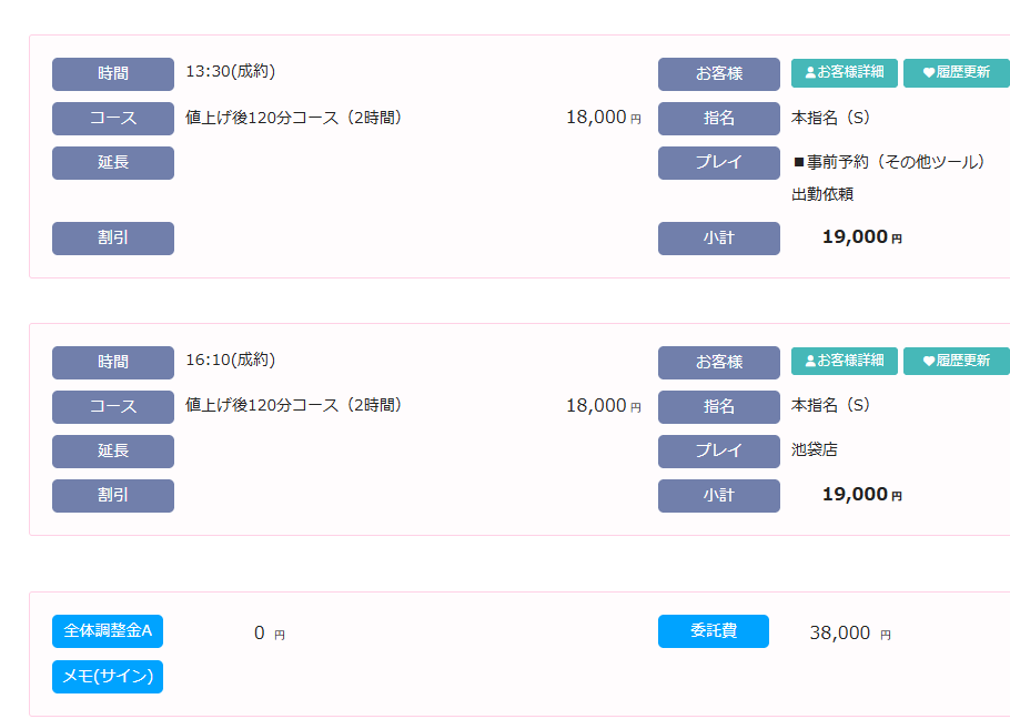 本指名×2 2,000円