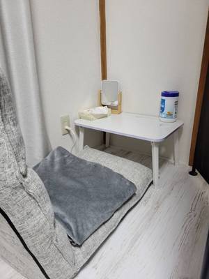パーテーションとカーテンで区切った