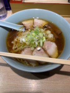 澄んだ醤油スープに、ほどよく縮れた麺がしっかり絡み、香り立つネギと柔らかなチャーシューが加わることで、優しく染みわたるような味わいに仕上がっています。