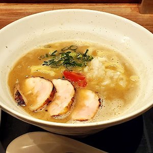 • スープは、鶏の旨みがたっぷり溶け込んだクリーミーな口当たり。